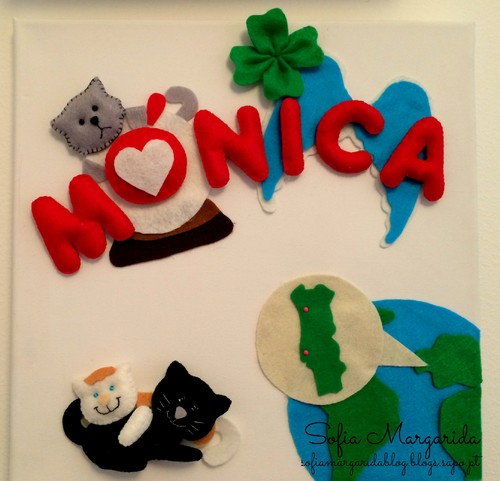 Não conheço a Mónica, mas conheço uma amiga dela muito especial! A pedido da m-M, hoje o post é dedicado à Mónica que faz anos! Tive o prazer de "entrar" dentro desta amizade enorme, através de uma prenda que me foi pedida. Um enorme desafio, pois havia imensos elementos que continham um pedaço de história destas duas amigas. Espero, sinceramente, que ambas gostem da prendinha!